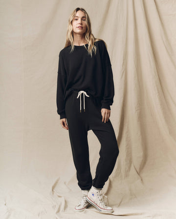 A relaxed fit with a dropped shoulder, cropped body length and clean cuffs with no distressing make this piece feel like the perfect deadstock sweatshirt flea market find. Authentic vintage details like a half moon in the back collar add extra character. Handcrafted locally in Los Angeles, our process ensures beauty and uniqueness—no two pieces are alike.
