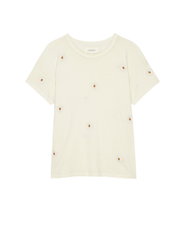 Inspired by one of our most cherished vintage tees, this is bound to become your favorite, too. Cut generously through the body, this tee has flattering updates like angled sleeves and a not-too-long length that hits just right. Made locally in Los Angeles, with a special embroidered floating daisy technique, our process ensures beauty and uniqueness—no two pieces are alike.