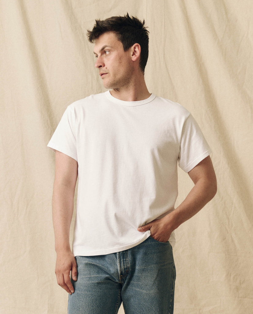The Boxy Crew. is a classic crew neck silhouette crafted in our new heavy weight fabric that is super soft and washed to perfection. Designed with a boxy shape that fits loose on the body with dropped shoulders and a slightly pitched sleeve, for a tee you’ll turn to time and time again. Garment dyed and made in the USA, this tee builds more character with each wear.