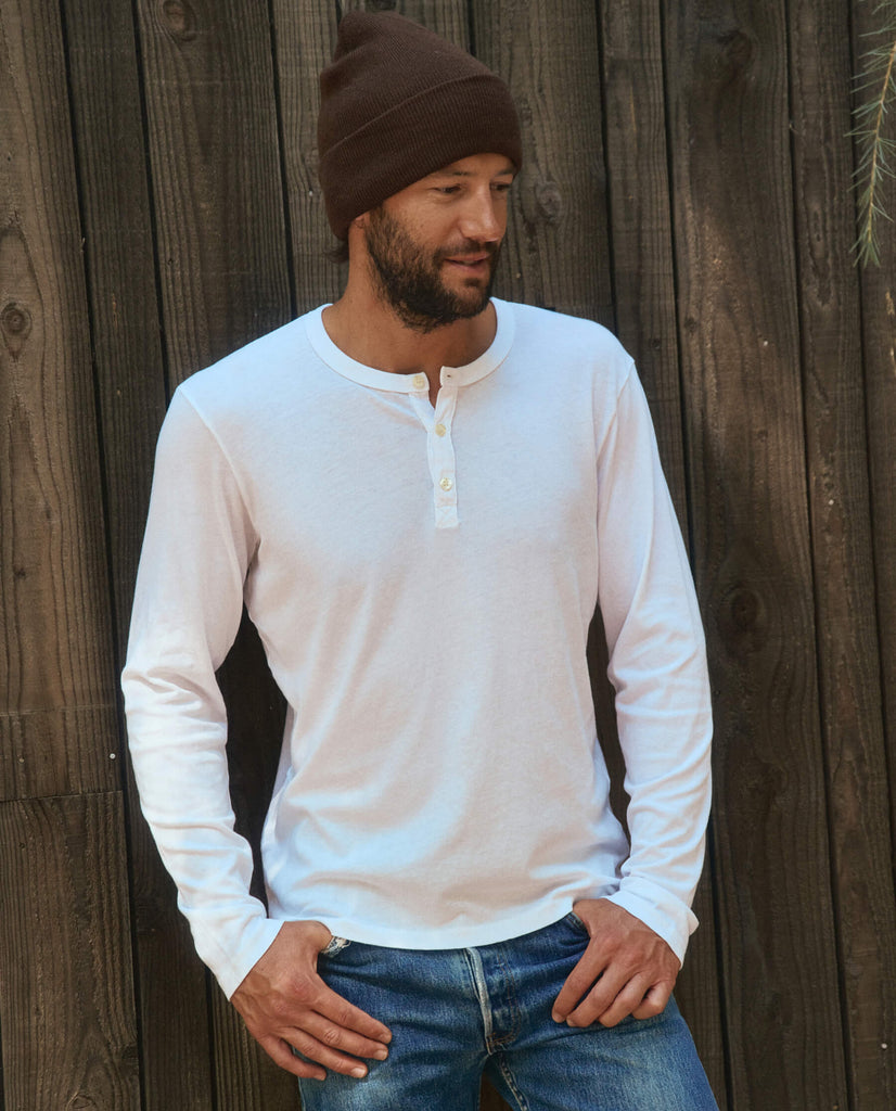 The Men’s Slim Henley. is crafted locally in Los Angeles of 100% cotton—a process that ensures authenticity, uniqueness, and that no two pieces are alike. Washed for the lived-in look and feel we love, this classic silhouette fits easy and slim through the body with long sleeves, a crew neck, and Henley placket with small buttons at the front. Wear it on its own or as a base layer as the temperature drops.